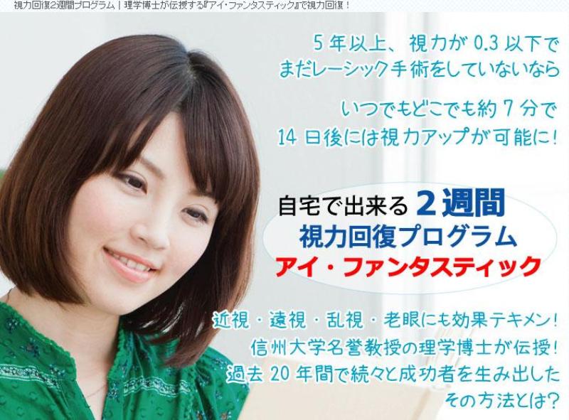 わたしがこのホームページを立ち上げたのには理由があります。「あなたの視力を今よりもUPして頂きたい」「あなたを視力のコンプレックスから解放させ、裸眼で世界を見ていただきたい」「とにかく視力を一生良いままで過ごして欲しい」そんな思いがあったからなんです!アイファンタスティック