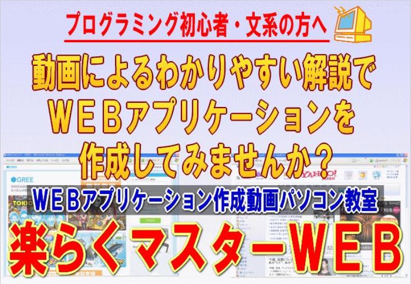 このたび、このWEBアプリケーションについて、プログラミングの経験のない初心者の方でも楽しく学べる動画パソコン教室を開発いたしました。もしあなたがこれから何かパソコン関係でスキルを身につけたいとお考えでしたら迷わずWEBアプリケーションをおすすめします!楽らくマスターWEB