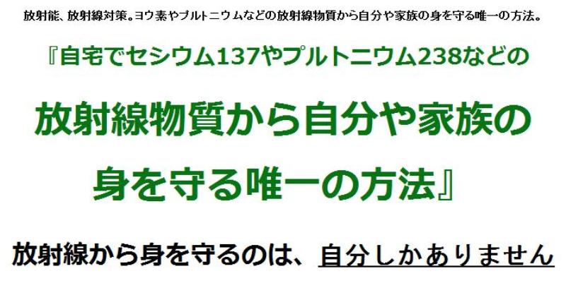 ⇒特典付き「自宅で放射線被ばくから身を守る唯一の方法」の詳細はこちら!