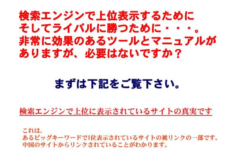 検索エンジンで上位表示するためにそしてライバルに勝つために・・・非常に効果のあるツールとマニュアルがありますが、必要はないですか?!フルオート被リンク獲得&アフィリエイトのダブル機能ツール「イザベラ」