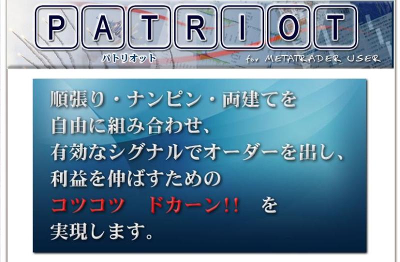 順張り・ナンピン・両建てを自由に組み合わせ、有効なシグナルでオーダーを出し、利益を伸ばすためのコツコツ ドッカーン!!を実現します!権蔵屋最終兵器 パトリオット